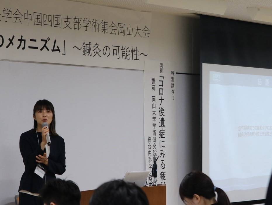 当センターの鍼灸師、瓜生ゆかりが2025年10月13日(月・祝)、岡山で開催された第36回(公社)全日本鍼灸学会 中国四国支部学術集会に参加し、「広島大学病院における緩和ケアとしての鍼灸介入の実態とその有用性」について発表しました。