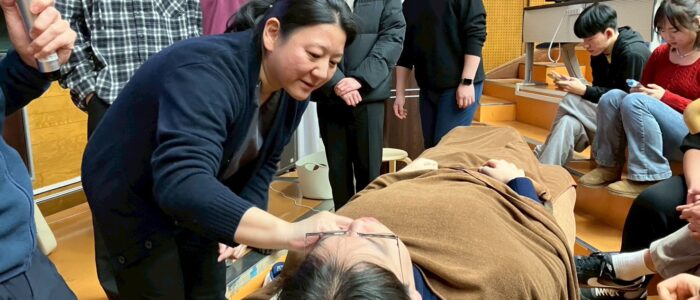 当センターの鍼灸師廣瀬桂子先生が韓国の慶熙大学の学生に接触鍼の応用講義を行いました。以下廣瀬先生の感想です。「接触鍼の手技の講義では、それぞれの手技を「どんな状態のときに使うのか」「使うとどんな変化が起こるのか」を、実際のデモンストレーションを交えながら紹介しました。